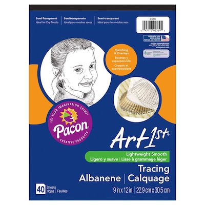The Pacon Art1st tracing pad measuring 9" x 12", allows you to sketch with pencil, pen, markers, charcoal and pastels. The bleed proof paper in this pad, has unruled margin and plain media. 40 tracing sheets per pad.