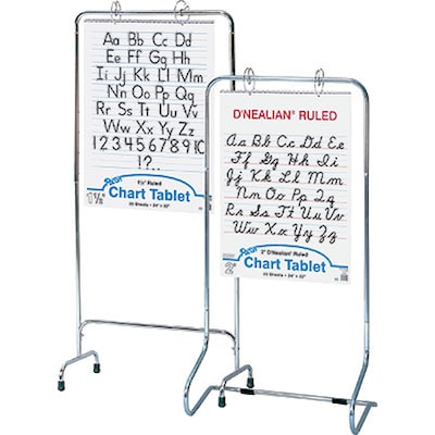 Tubular metal stands hold sheets or full chart pads.