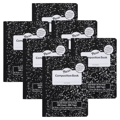Pacon Composition Notebooks, 9.75" x 7.5", Wide Ruled, 100 Sheets, Black, 6/Bundle (PACMMK37101DE-6)