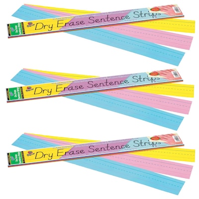 Pacon Dry Erase Sentence Strips, 3" x 24", Assorted Colors, 30 Per Pack, 3 Packs (PAC5186-3)