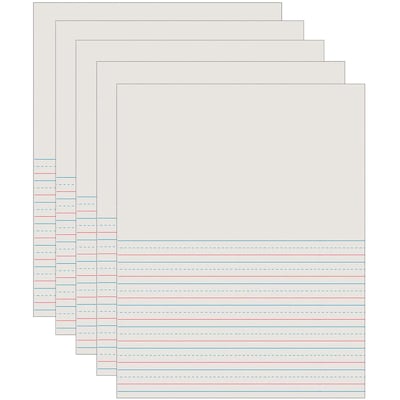 Clean White newsprint paper printed on both sides with a red baseline and a dotted blue midline, making it easy for students to find the headline quickly and easily. It's also great for tracking students' handwriting progress over time, and helps build a solid foundation for students to write legibly and communicate effectively through writing. Ruling conforms to D'Nealian™ handwriting program. Package contains 500 sheets. Measures 8.5" x 11". Recyclable. Sold as a set of 5 packs, 2500 sheets total.