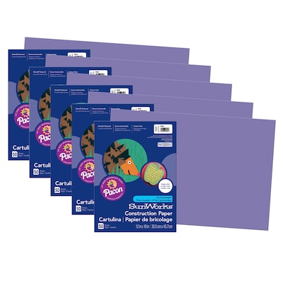 Pacon SunWorks 12" x 18" Construction Paper, Violet, 250 Sheets/Pack, 5/Packs (PAC7207-5)
