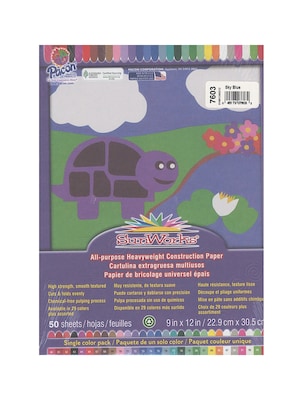 Pacon Sunworks 9" x 12" Construction Paper, Sky Blue, 50 Sheets/Pack, 5/Pack (22501-PK5)