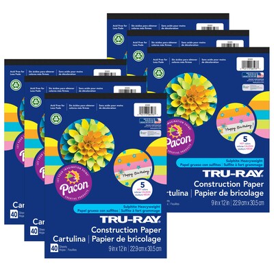 Convenient pad of Tru-Ray® Sulphite Construction Paper! The perfect choice for all art projects. Bright colors resist fading and have a smooth finish. Colors include: Atomic Blue, Lively Lemon, Electric Orange, Brilliant Lime, and Shocking Pink. Acid-free for less fade. Recyclable. Measures 9" x 12". Each pad includes 40 sheets. Sold as a pack of 6 pads.