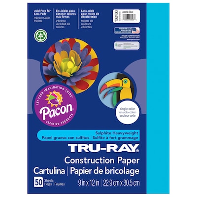 Tru-Ray 9" x 12" Construction Paper, Blue, 50 Sheets (P103022)