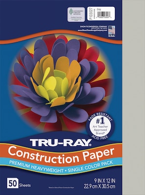 Pacon® Tru-Ray Construction Paper 9" x12", Gray, 50 Sheets/Pack (PAC103027)