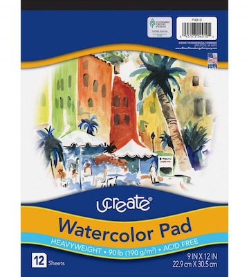Pacon ucreate Watercolor Pad, 9"W x 12"H, 12 Sheets/Pad (P4910)