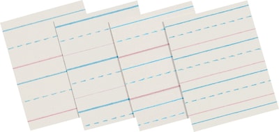 Pacon® Newsprint measuring 10 1/2" x 8" features red and blue ruling on both sides that help children to improve their handwriting. White newsprint has a rule width of 1/2" x 1/4" and is sold in a ream of 500 sheets.