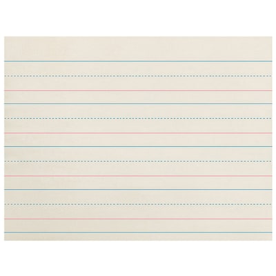 Pacon® Zaner-Bloser™ Broken midline paper for grade K help students to find the headline with ease. Manuscript ruled paper measuring 10 1/2" x 8" features white newsprint with 9/16" - 1 1/8" line space and sold as 500 per pack.