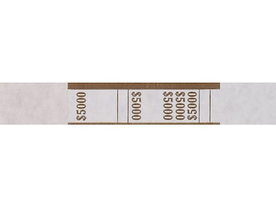 CONTROLTEK $5000 Currency Strap, White/Brown, 1000/Pack (560022)