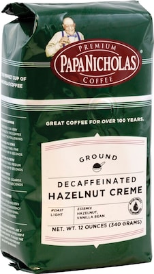 Papa Nicholas® Premium Coffee; Hazelnut Creme, Decaf, Ground, 6-12oz Packages/Box