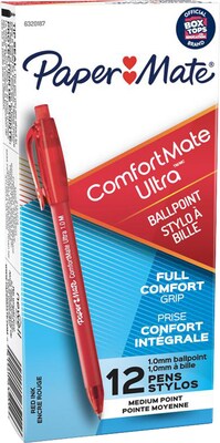 Enjoy a comfortable grip with this 12-pack of Paper Mate ComfortMate Ultra medium-point red retractable ballpoint pens.