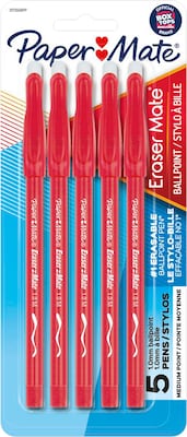Paper Mate Eraser Mate Erasable Ballpoint Pen, Medium Point, Red Ink, 5/pk (31735)