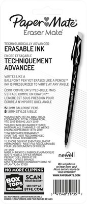 With a 1.0 mm medium point, the Paper Mate Erasermate Pen features cutting-edge erasable ink technology.