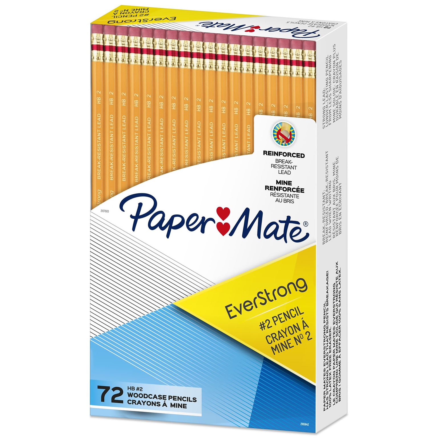Paper Mate EverStrong #2 Pencils, Reinforced, Break-Resistant Lead When Writing, 72-Pack