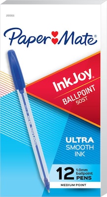 Featuring an unparalleled, lag-free ink system, the Paper Mate InkJoy 50ST Ballpoint Pen is ready to take on your most difficult writing tasks. This ballpoint pen comes with blue ink and a 1.0 mm medium point.