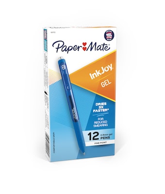 Paper Mate InkJoy Retractable Gel Pen, Fine Point, 0.5mm, Blue Ink, Dozen (1951722)