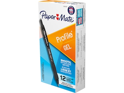 Paper Mate Profile Retractable Gel Pen, Medium Point, 0.7mm, Black Ink, Dozen (2095476)
