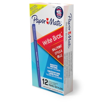 Paper Mate Write Bros. Ballpoint Pen, Medium Point, Blue Ink, Dozen (3311131)