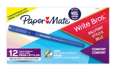 Experience the reliability of these Paper Mate Write Bros. Grip medium-point blue ballpoint pens.