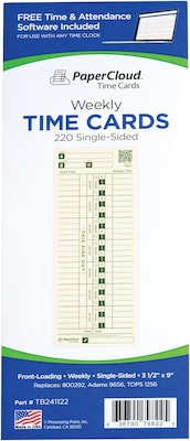 | All PaperCloud time cards are printed and manufactured in the United States of America, unlike much of the competition. |