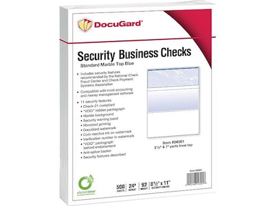 Print checks simply and securely with this DocuGard blue top check paper.