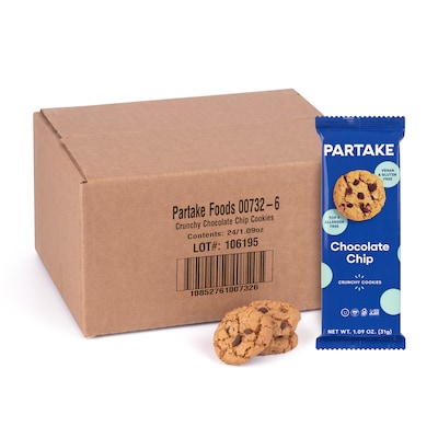Partake Gluten Free Crunchy Chocolate Chip Cookie Snack Pack, 1.09 oz., 24/Pack (220-02417)