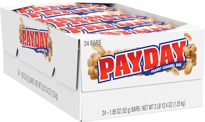Use this 24-piece box of 1.85-ounce Payday peanut caramel candy bars for sharing or personal indulgence.