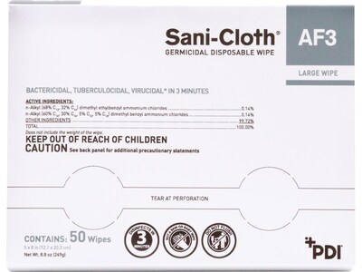 PDI Sani-Cloth AF3 Disinfecting Wipes, 50 Wipes/Pack, 10 Packs/Carton (H59200)