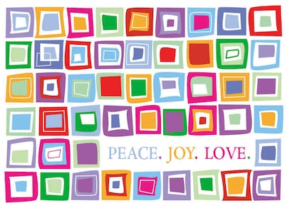 Peace, Joy, Love Geometric Squares Greeting Cards, With A7 Envelopes, 7" x 5", 25 Cards per Set