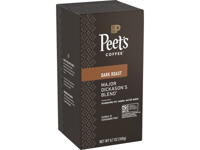 Peet's Coffee Major Dickason's Blend Coffee Pods, Dark Roast, 16/Box, 6 Boxes/Carton (1001062)