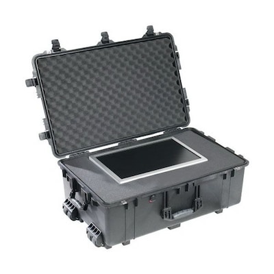 - Pelican™ 31.59" x 20.47" x 12.45" Black foam hard case with firm wall design resistant to chemicals features modifiable name plate and is watertight, dust proof.