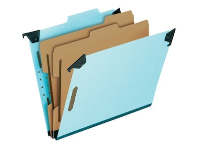 - Blue pressboard hanging folders with inner dividers help subdivide your documents within the folders