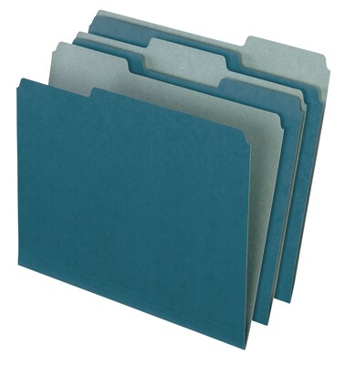 Pendaflex Earthwise File Folder features paper made from 100% recycled fiber with 50% post-consumer fiber. These folders are lighter on the inside to prevent misfiling, and are available with three tab positions for filing variety. Letter Size, blue. 10 0/Box.