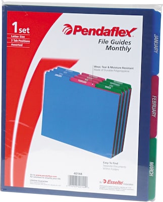 Organize files with colorful Pendaflex File Guides featuring preprinted top tabs.