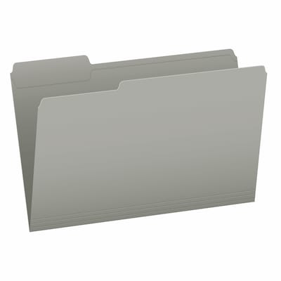 These Pendaflex File Folders have thick, reinforced tabs that will better withstand wear and tear. They come in a nice, neutral gray to match any home or office aesthetic. The 1/3 cut tabs come in 3 different positions (left, right, center), so you can see all of your labeled tabs in a file box or file drawer. Each folder fits legal-size, 8.5" x 14", papers and is scored along the bottom for 3/4 inch expansion. Box of 100 gray file folders.