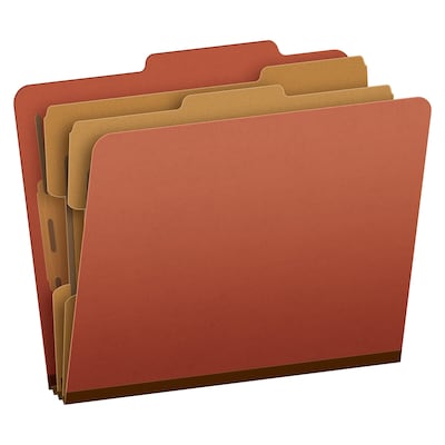 Create a color-coded filing system with these Pendaflex moisture-resistant classification folders in brick red. The moisture-resistant construction makes these folders ideal for use in long-term storage or industrial settings, and the multiple-panel design provides convenient options for organizing documents. With a 2/5-cut tab layout, these Pendaflex moisture-resistant classification folders make it easy to label each section for easy document location.