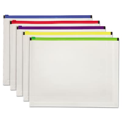 Pendaflex Poly Zip Plastic Zip Document Envelope, 10" x 13", Assorted Colors, 5/Pack (85292)