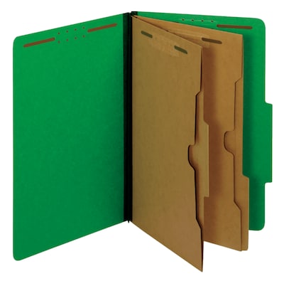 Inner divider helps subdivide your documents within the folders. Includes 2 dividers and 6 total fasteners. Made with 25 pt. Pressboard covers and 11 pt. Kraft dividers. Legal. Dark Green. 10/Box.
