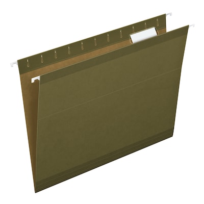 Protect business documents with these Pendaflex reinforced five tab letter size standard green hanging file folders that reduce paper tears and rips.