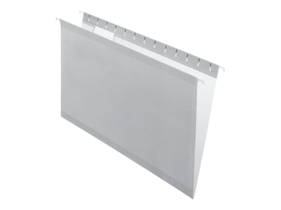 Improve your filing system with this box of 25 Pendaflex legal-size 1/5-cut gray reinforced hanging folders.