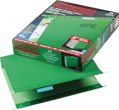 Pendaflex Reinforced Recycled Hanging File Folder, 2" Expansion, 5-Tab Tab, Letter Size, Bright Green, 25/Box