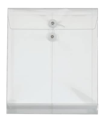 Durable polypropylene material is wear, tear and water resistant. Acid free and archival safe. Great for organizing documents of all sizes. Flap and string closure keeps your documents safe and secure. Top open. 1.25" expansion. Letter Size. Available 5 per pack. Clear.