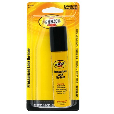 Don’t let the cold weather freeze you out—keep your locks working smoothly with Pennzoil® Lock De-Icer.