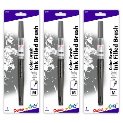 Pentel Arts Color Brush with Water-Based Ink, Gray, 3/Pack (PTAGFLBP137-3)