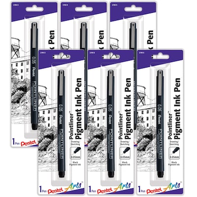 Pentel Arts Pointliner Pen, 0.05mm, Black Pigment Ink, 6/Pack (PTAS20P05BPA-6)