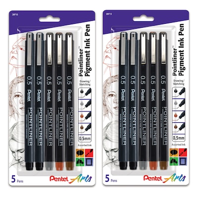 - Sold as 2 sets for a total of 10 pens, each set includes (5) 0.5mm pens in assorted ink colors: 2 black, 1 grey, 1 sanguine and 1 sepia