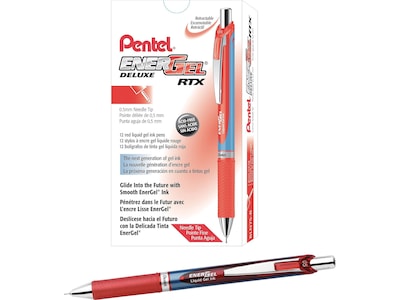 Bring a professional look to your desk set with these Pentel EnerGel Deluxe RTX 0.5mm red liquid gel pens.