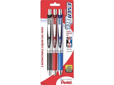 Take notes during the next company meeting with this 3-pack of Pentel EnerGel Deluxe RTX retractable medium-point 0.7mm gel-ink pens.