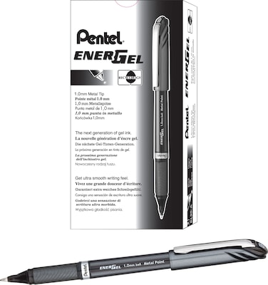 Pentel EnerGel NV 1.0 millimeter black liquid gel pens contain super-smooth ink that doesn't smear or blot.